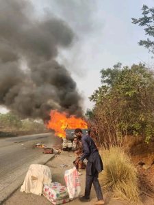 The explosion kept raging like a fire in the dry season. The bus got burnt down, including the passengers’s properties, which included foodstuffs, gas, and documents, but not all was burnt; some were rescued in the process.