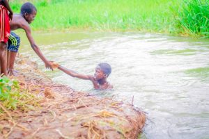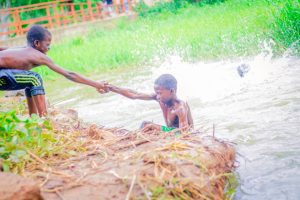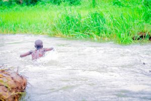 When this Reporter reached the bridge, series of school age kids were found swimming as students of the university hurried to their lecture halls.